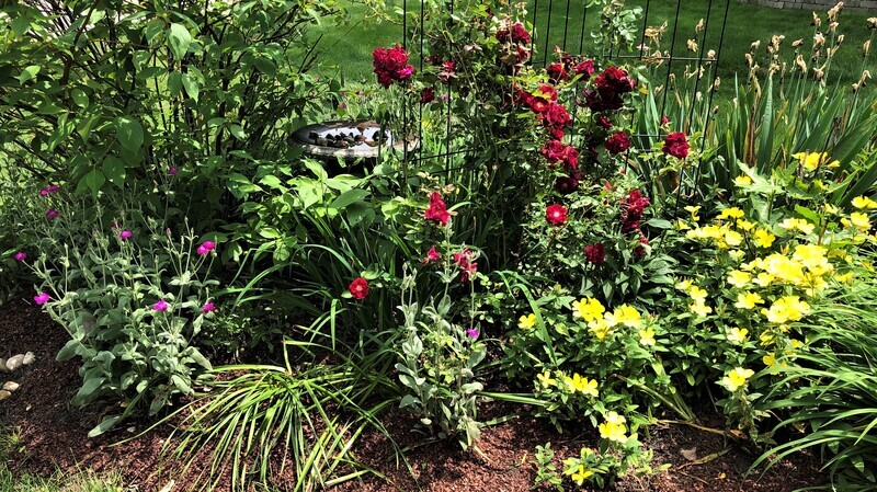 I'll say it myself. I have a beautiful garden. It's taken twenty years to build and grow, and as all good gardeners know, it changes constantly as I split and propagate plants from here to there. Sometimes the birds and bees bring little treats in on their feeties which end up seeding themselves and growing. Sometimes plants that I didn't expect to see again after the previous year show up in just the right spaces. It's freaking magical. Hmmm ... kinda like watercolors!